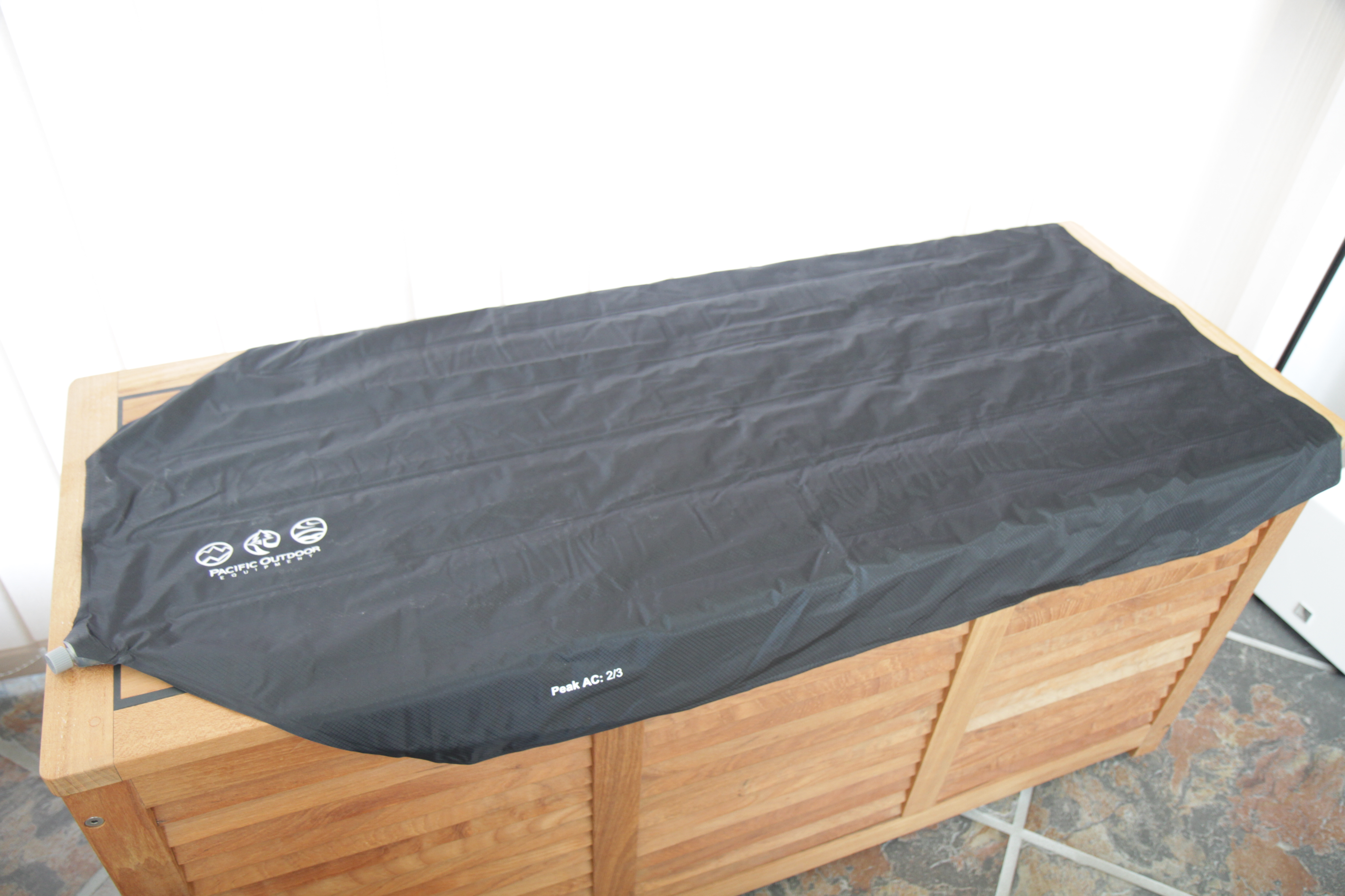Jeg bestemte mig for liggeunderlaget Pacific Outdoor Equipment Peak AC 2/3. Rørerne løber på langs. Så tenderer man i mindre grad til at rulle af liggeunderlaget. De 2/3 henfører til at længden på liggeunderlaget er 2/3 af normal længde. Det er for at spare vægt. POE Peak AC 2/3 vejer heller ikke meget. Kun 320 gram.